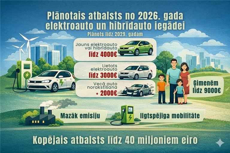 Cik liels valsts atbalsts elektroauto un hibrīdauto Latvijā plānots sākot ar 2026.gadu? Paredzēts sniegt atbalstu ne vien elektromobiļu un ārēji lādējamu hibrīdauto, bet arī ūdeņraža automobiļu iegādei. Klimata un enerģētikas ministrija (KEM) ir izstrādājusi jaunu valsts atbalsta programmas projektu videi draudzīgu automobiļu iegādei.